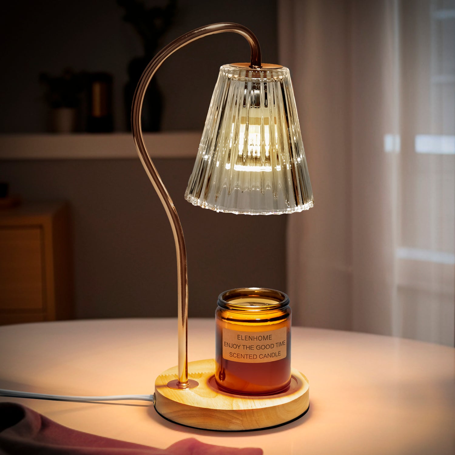 Elenhome Candle Warmer Lamp, Modern-Glass Candle Lamp Warmer with Timer & Dimmer, Electric Candle Warmer Lamp for Jar Candles, Wax Melter Warmer Lamps for Home Decor Gift, with 2 * 50W Bulbs (Amber)